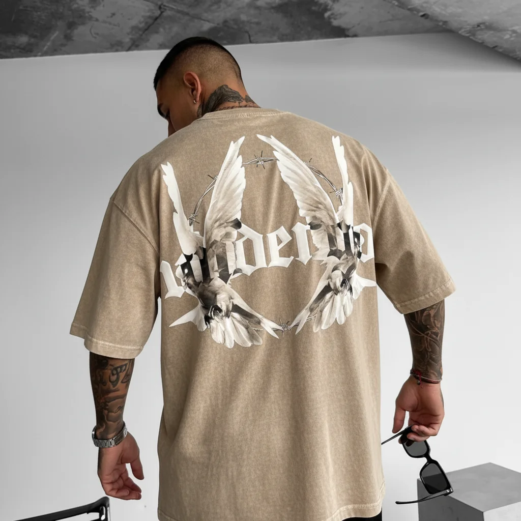 Unisex Casual Oversized Paradise Printed Washed Tee